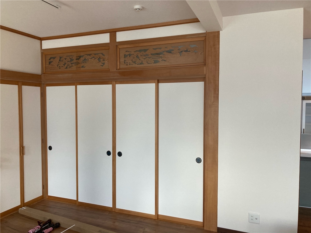 和室はもとの落ち着いた雰囲気を大切にしながら、内装を整えて過ごしやすい空間に。寝室は畳からフローリングに変更し、すっきりとした快適なプライベート空間に生まれ変わっています。
