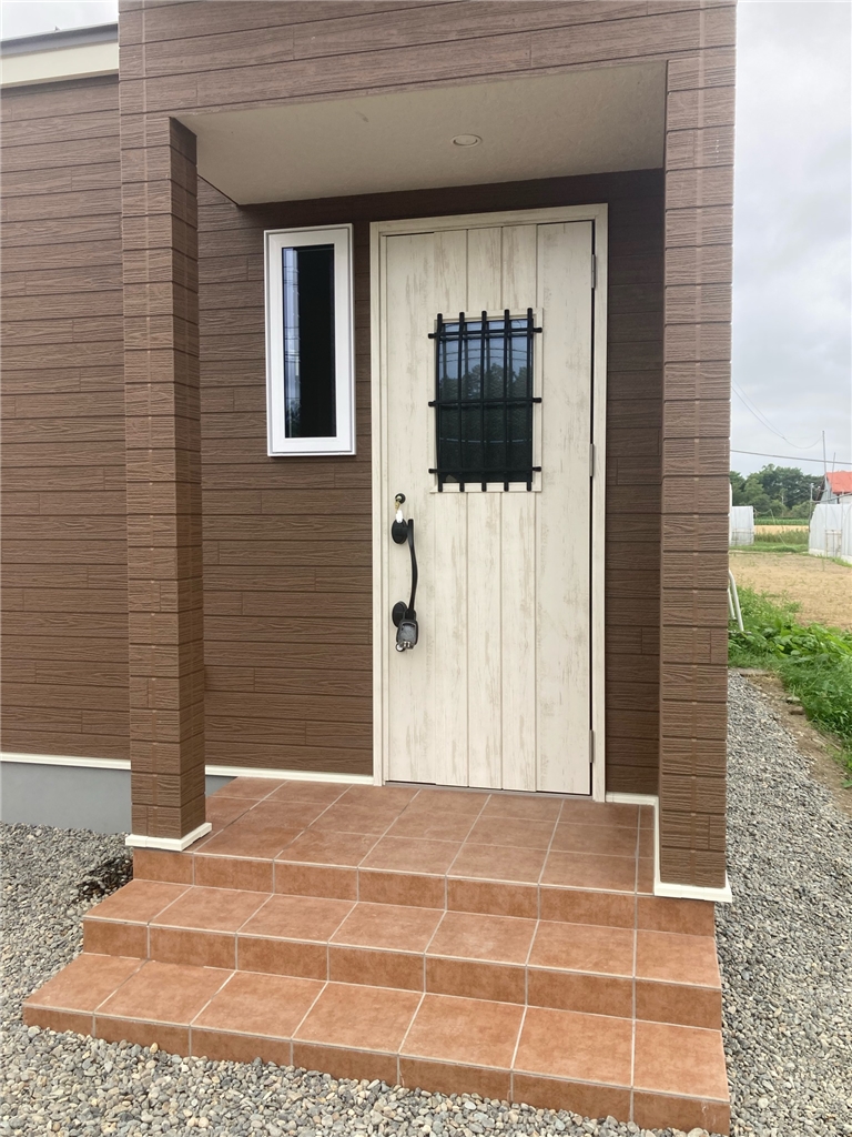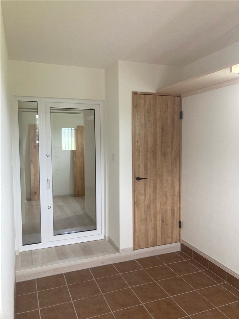 増築部分には、農作業の合間や買い物帰りに便利な勝手口を新設。トイレやランドリールームにも直接アクセスでき、屋外と屋内をつなぐ実用的な動線が整いました。毎日の暮らしにゆとりを生む、頼れる出入口です。