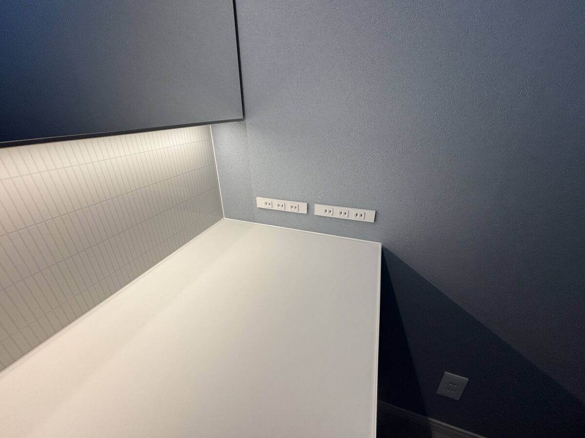 洗面やキッチンのカウンター上に6口のコンセントを設置。