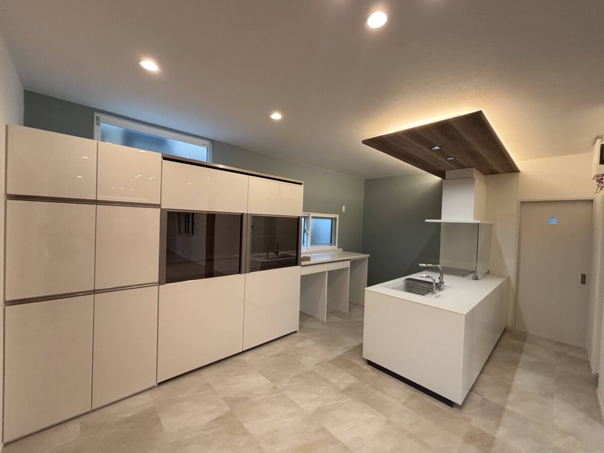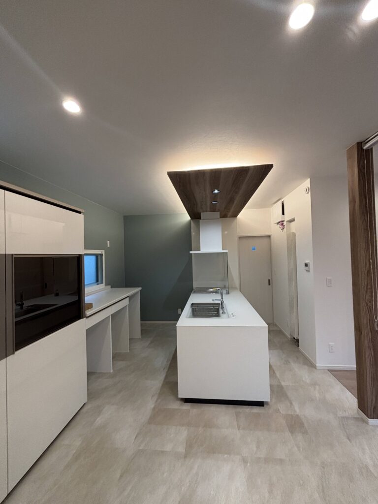 リビングと和室をつなげて、ひと続きの広々とした空間にしたいと考えていました。キッチンはオープンにして、収納力も確保しながら、すっきりとした見た目にしたかったんです。