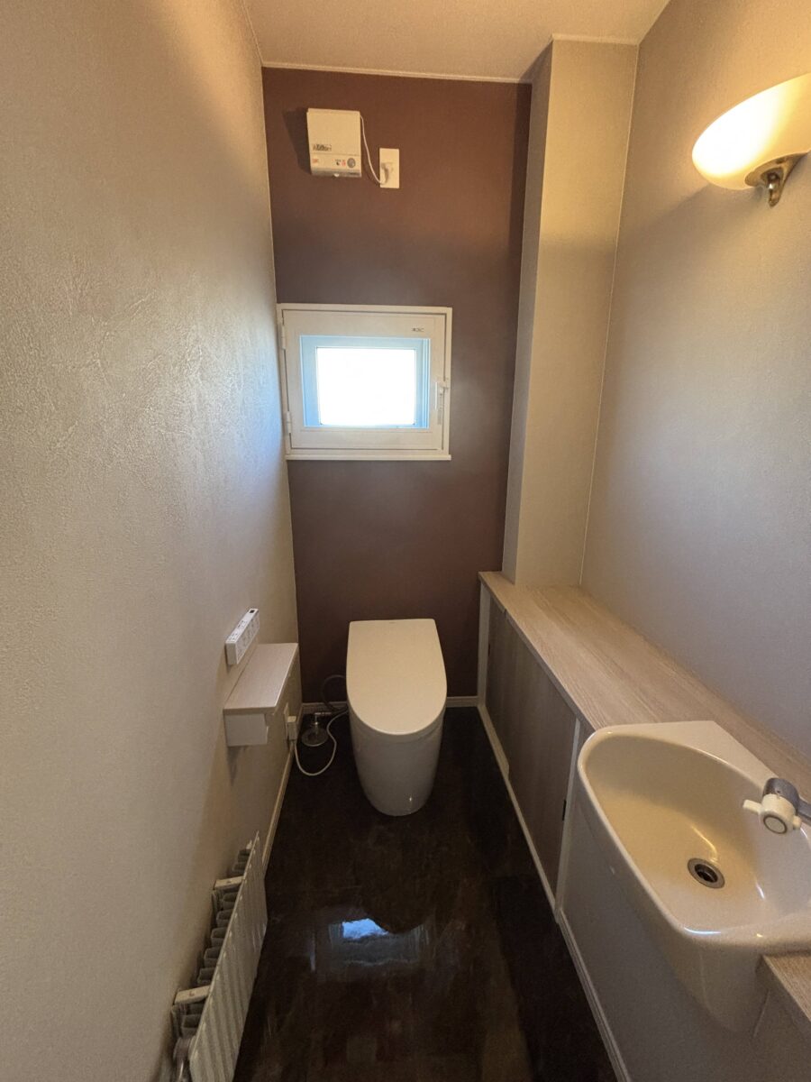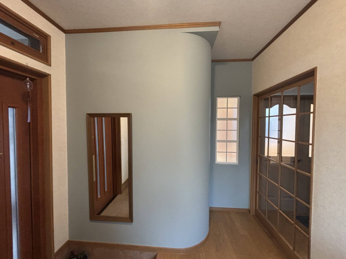 また、玄関ホールまわりは既存の内装を活かしたいというご希望があり、リビングやトイレ、洗面所の建具は片面を塗装し、新旧の印象が自然になじむよう整えています。