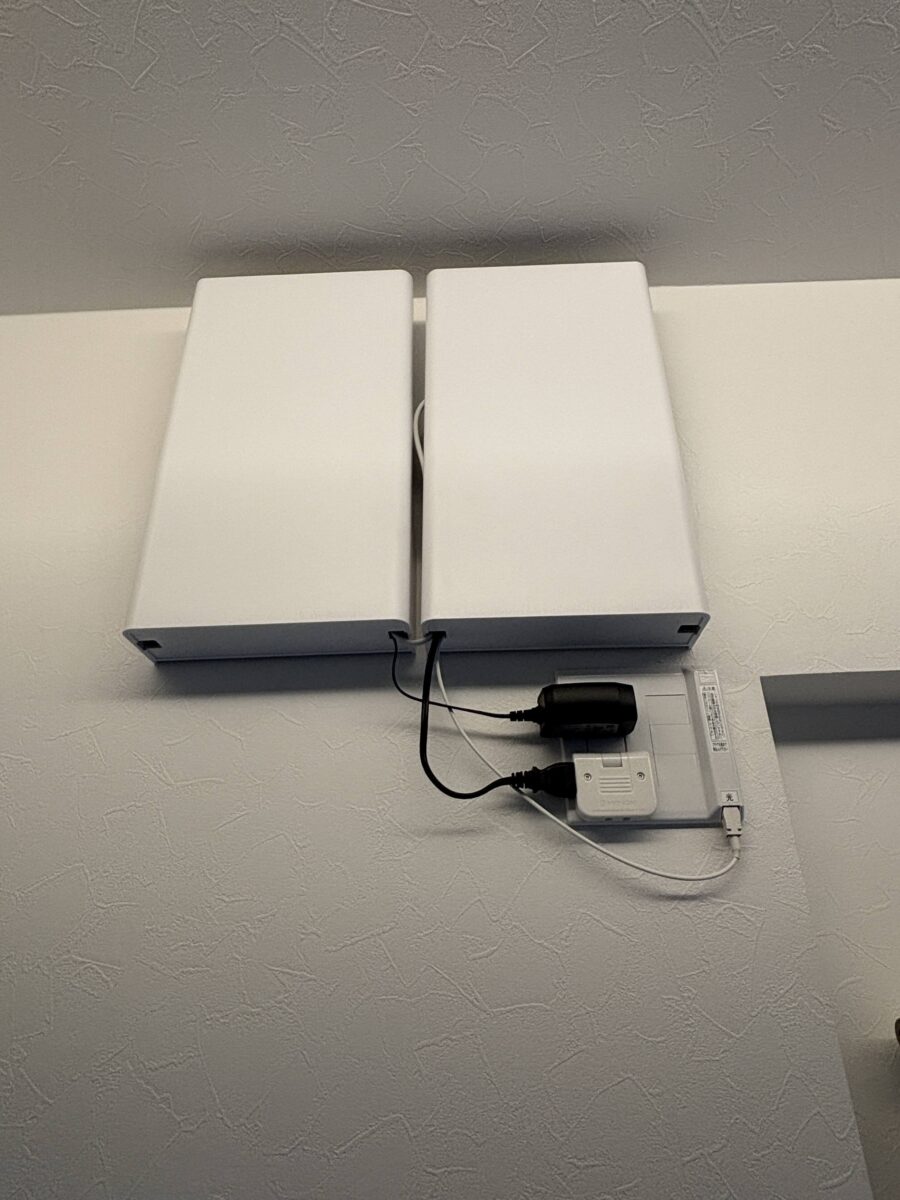 また、インターネットの配線やルーター類は、専用の収納ボックスにまとめて、見た目にもすっきりと整えています。