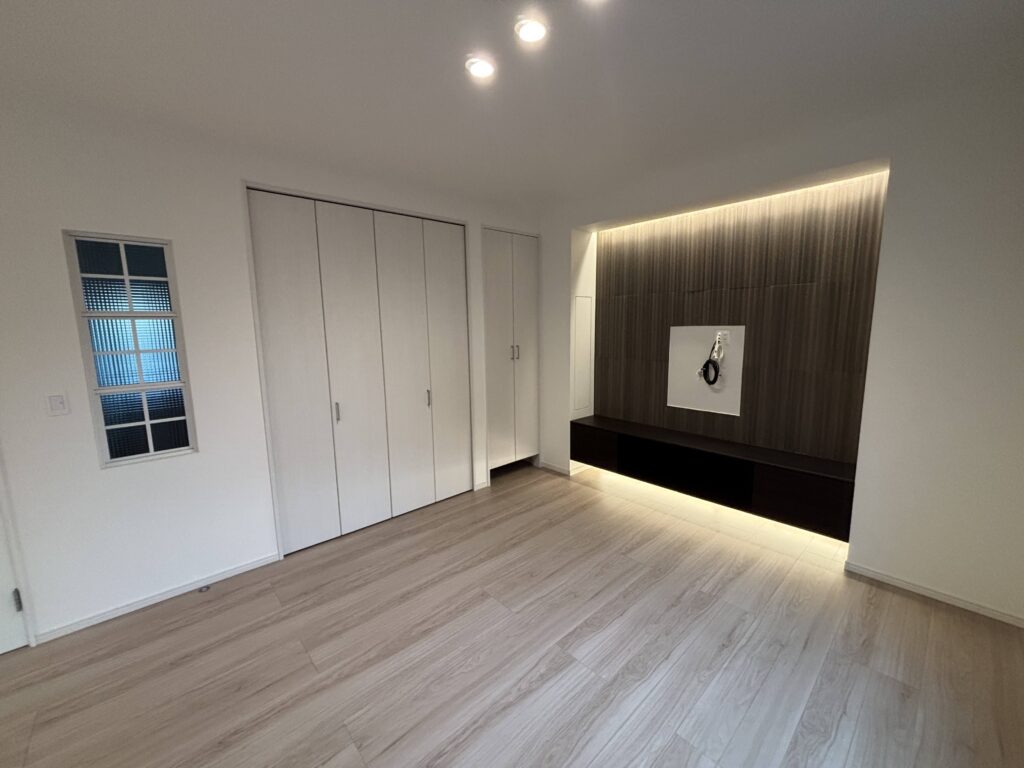 | 使用商材・建材 | キッチン:TOTOクラッソ カップボード:LIXIL リシェル 洗面台:TOTOエスクア 浴室:TOTOサザナ 便器:TOTOネオレスト テレビキャビネット:LIXIL ヴィータス 室内建具:パナソニックベリティス フロアー:パナソニック ベリティスフロアーLimited 照明器具:オーデリック 内窓:LIXIL インプラス 飾り窓:LIXIL デコマド 飾り壁:LIXIL エコカラット |