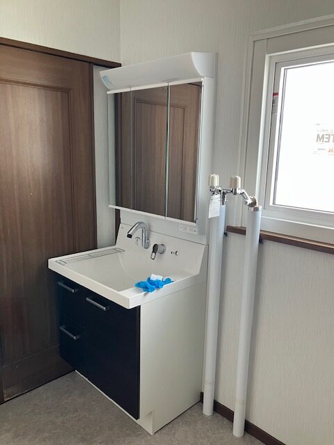 | 使用商材・建材 | キッチン:LIXILシエラ 洗面台:LIXILピアラ 浴室:LIXILリデア 便器:LIXILアメージュ 室内建具:LIXILラシッサSクリエモカ フロアー:Panasonic USUI-TA ウォールナット柄 照明器具:DAIKO 外窓:LIXIL 樹脂窓EWPG 玄関ドア:LIXILリシェント 玄関ドア3片袖ランマ付R G12型ポートマホガニー FFストーブ:コロナ フィルネオ エアコン:三菱 ズバ暖霧ヶ峰 暖房給湯ボイラー:コロナ エコフィール |